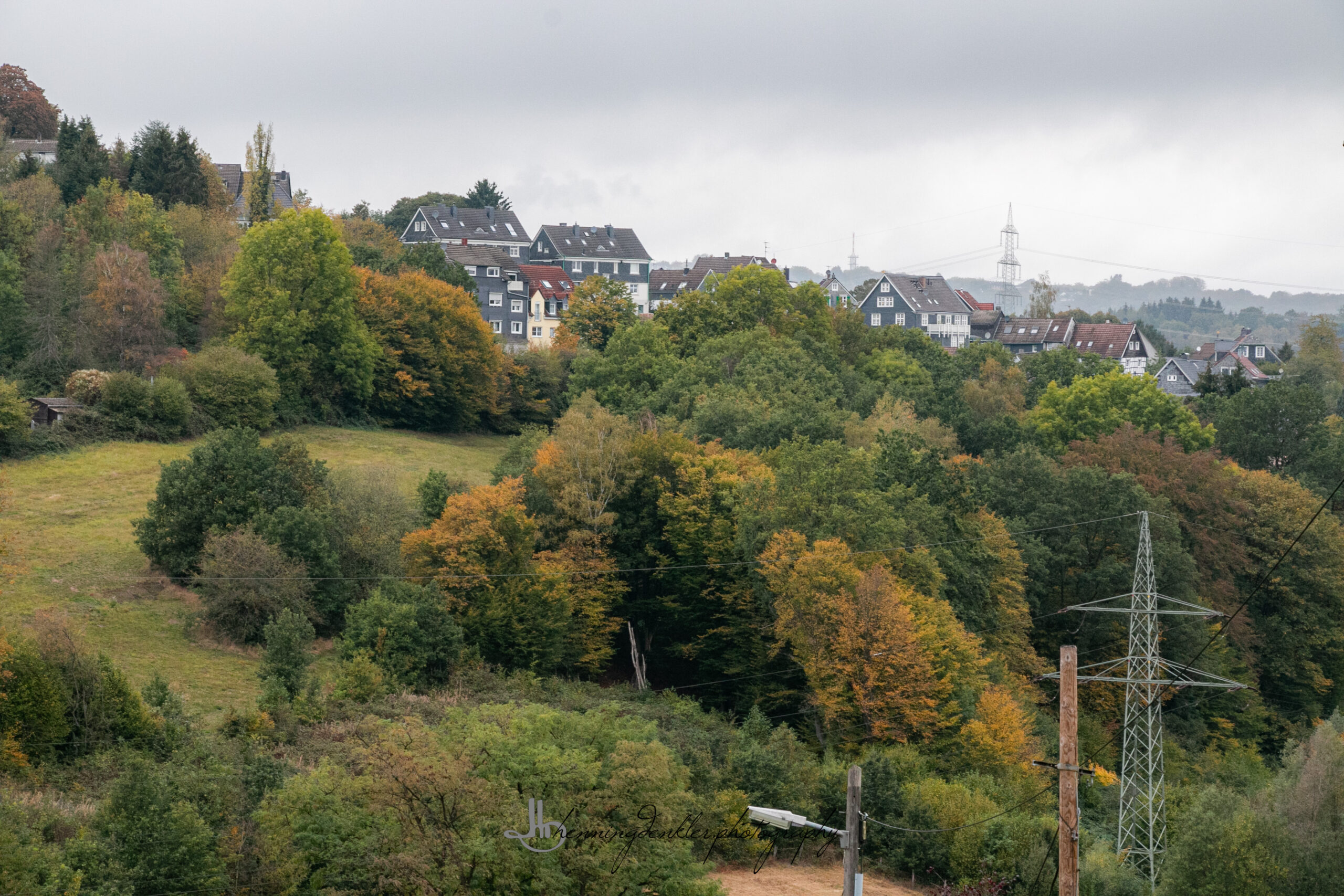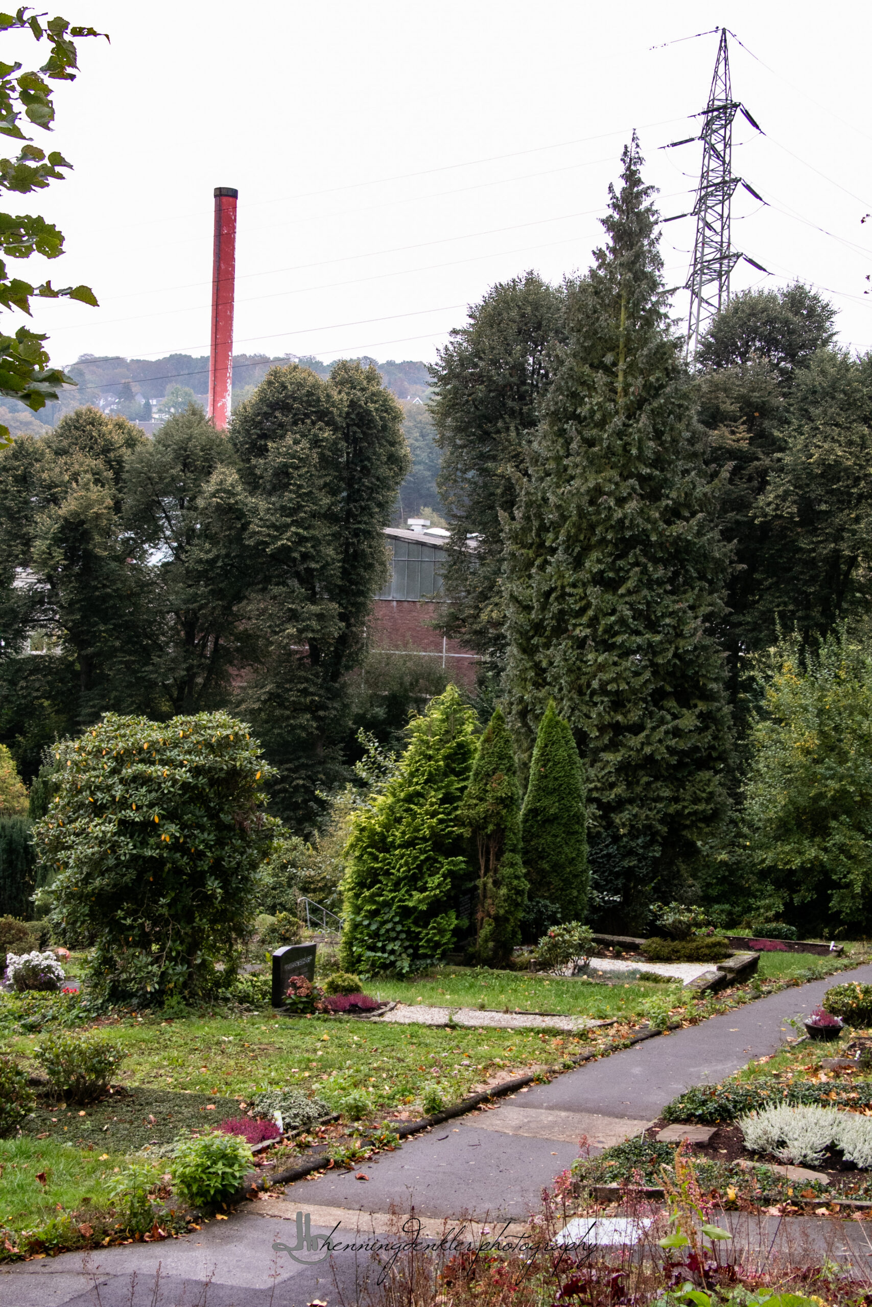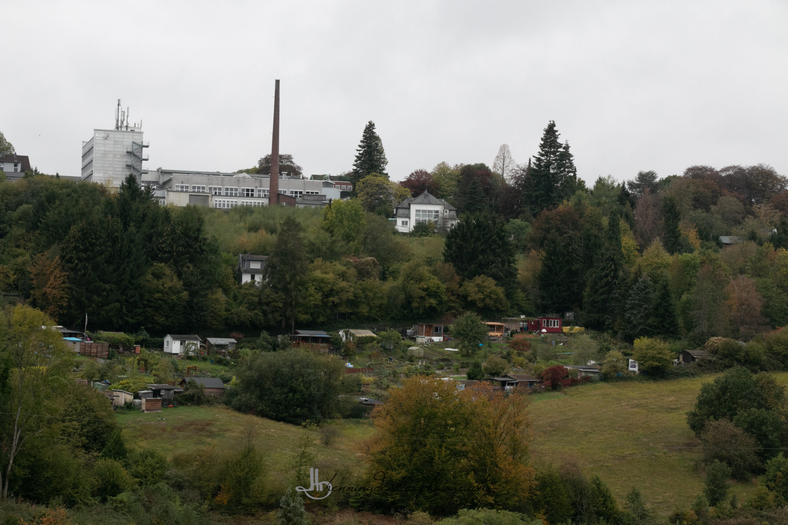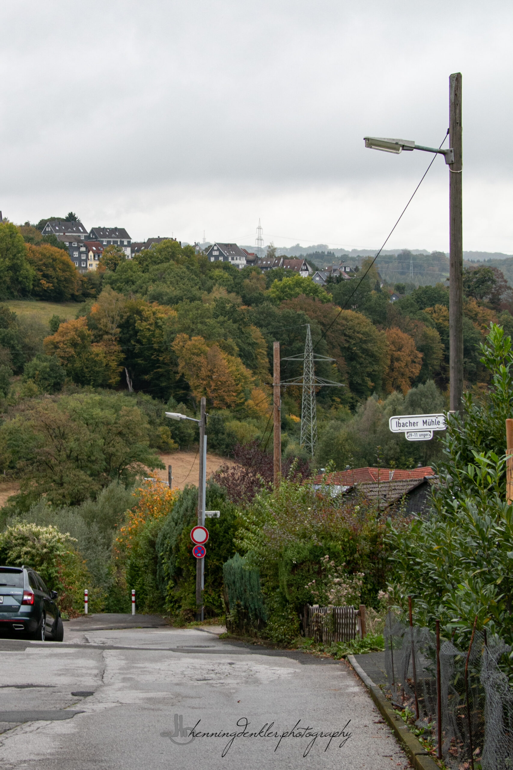 Der Weg führte mich auch an der Ibacher Mühle entlang, wahrscheinlich einer der steilsten Straßen des hügeligen Remscheids. Gleichwohl erlaubt gerade der Blick ins Tal ein tolle Sicht auf den Büchel und den Hastener Friedhof – also genau dorthin, wo ich herkam.
