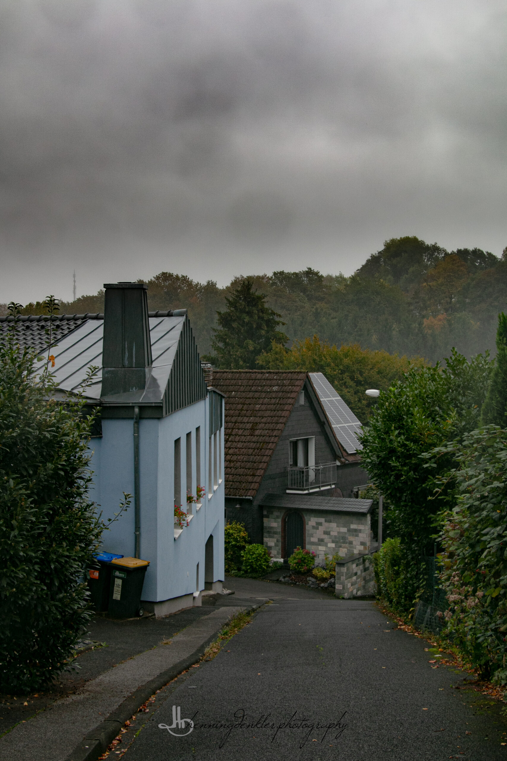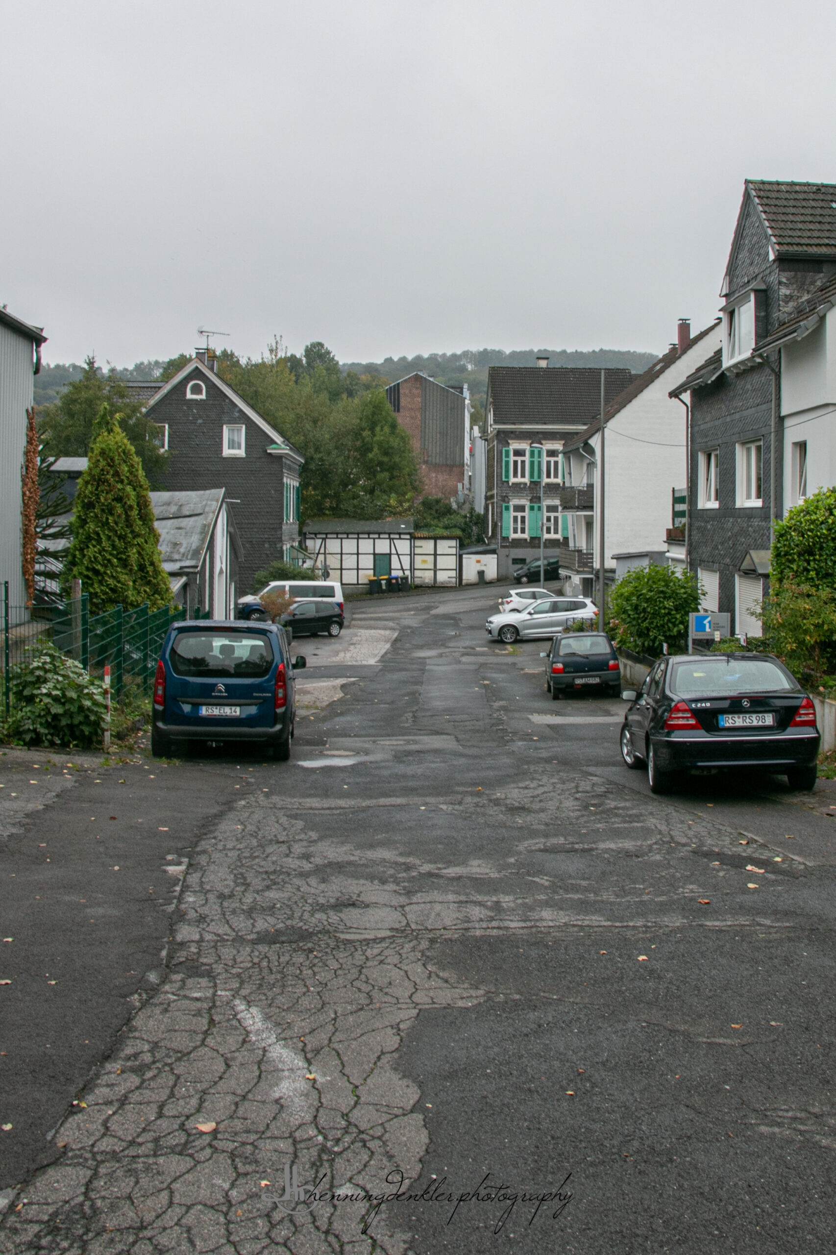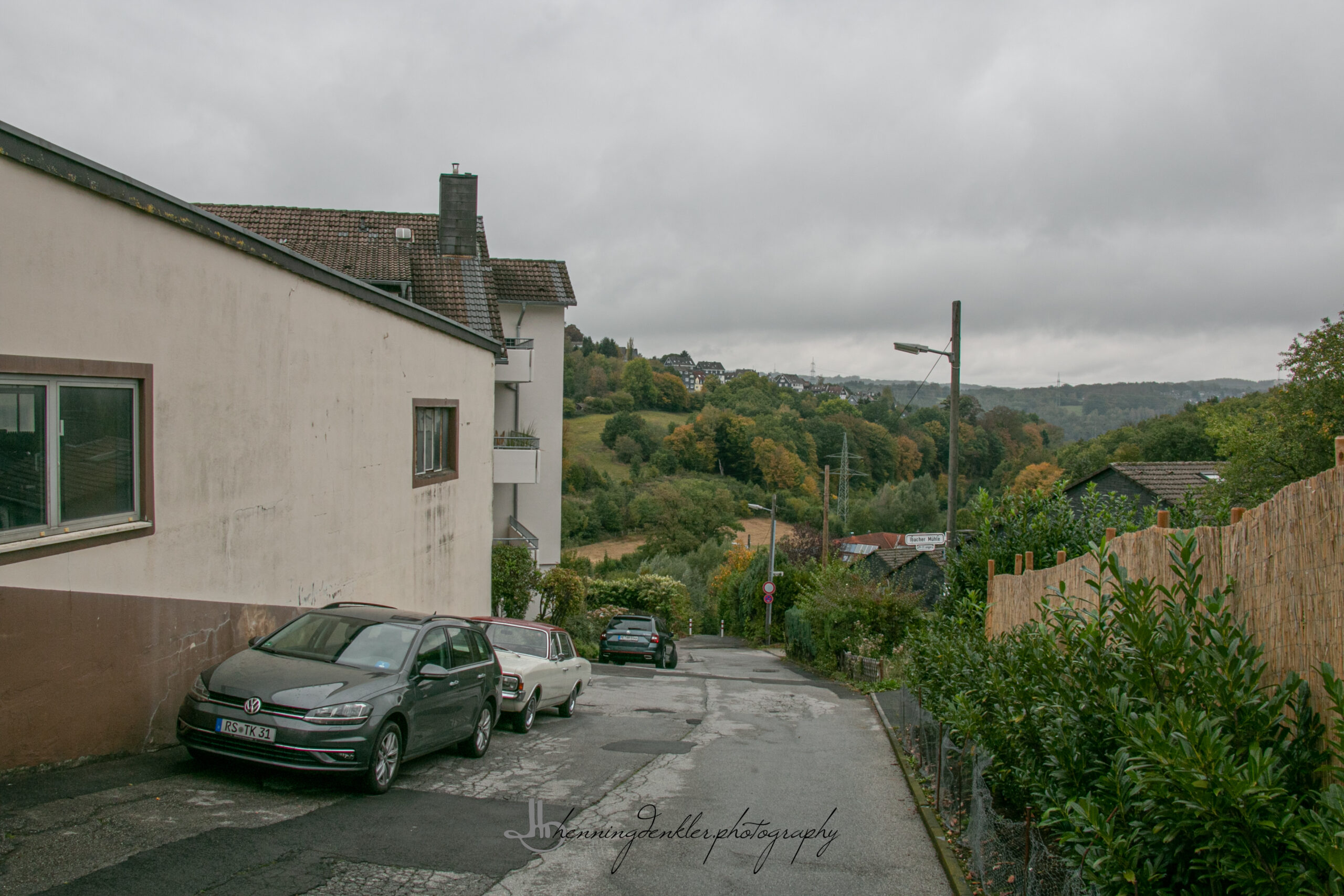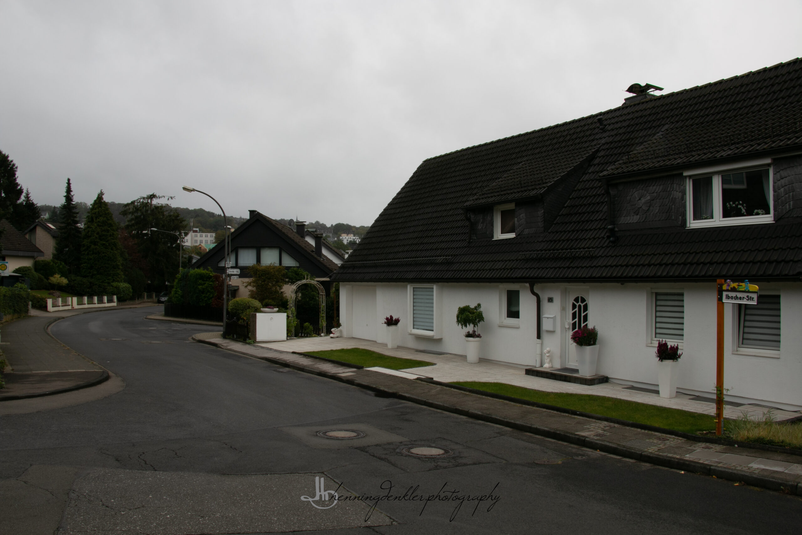 Der Weg führte mich auch an der Ibacher Mühle entlang, wahrscheinlich einer der steilsten Straßen des hügeligen Remscheids. Gleichwohl erlaubt gerade der Blick ins Tal ein tolle Sicht auf den Büchel und den Hastener Friedhof – also genau dorthin, wo ich herkam.