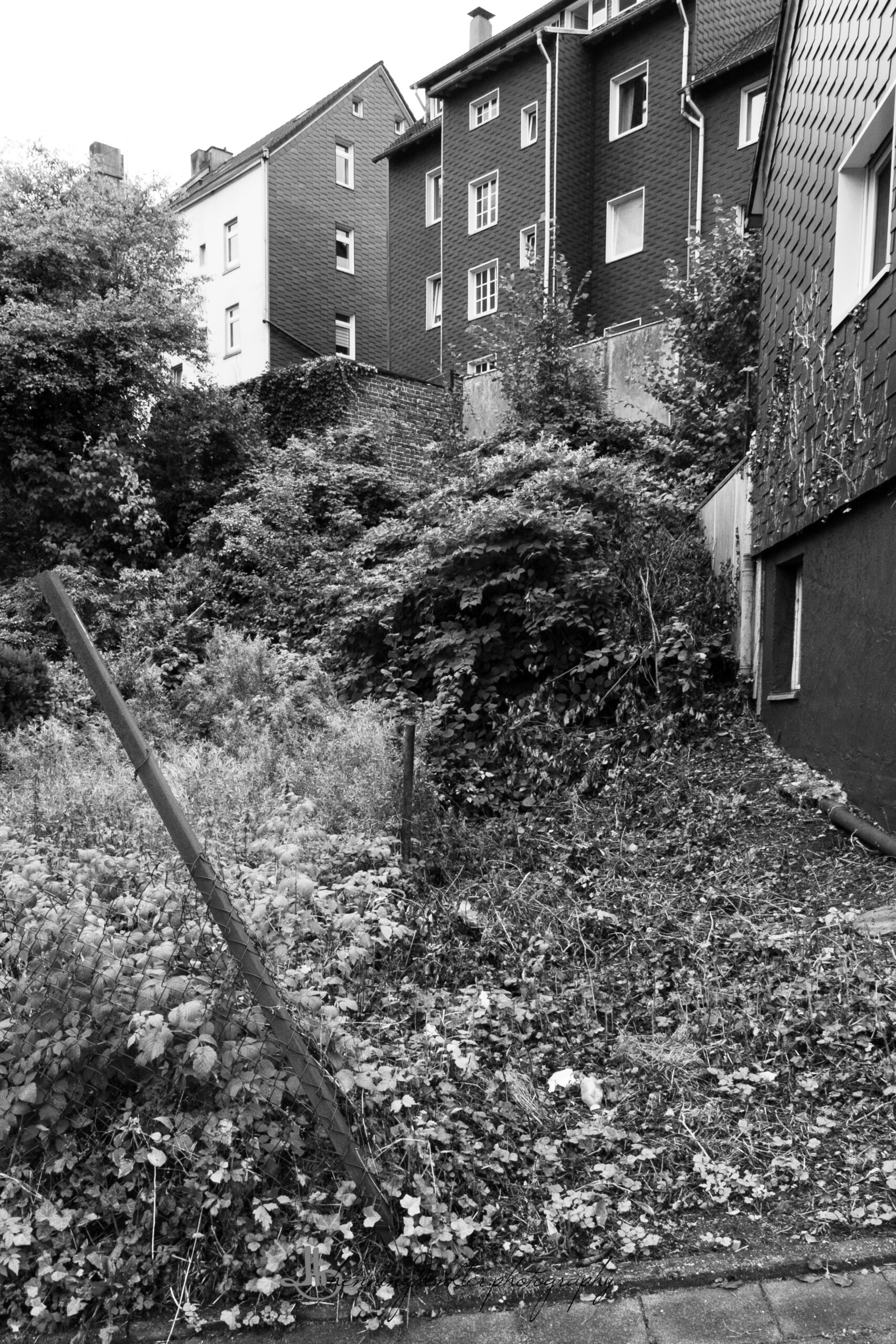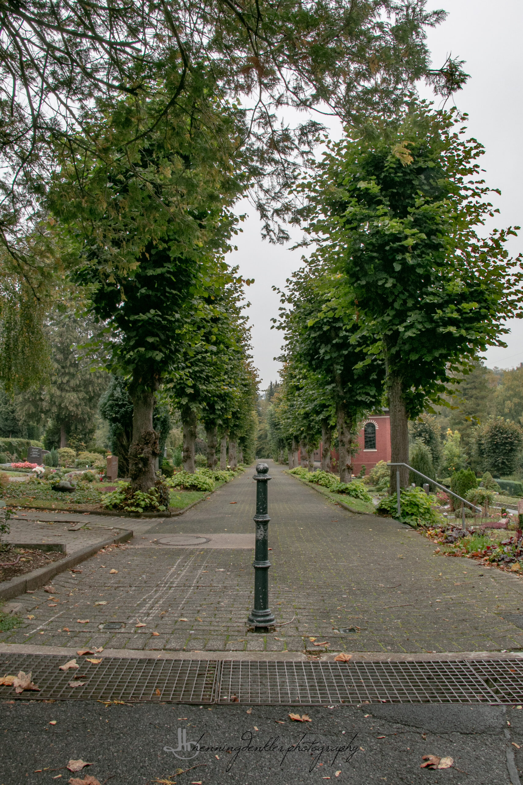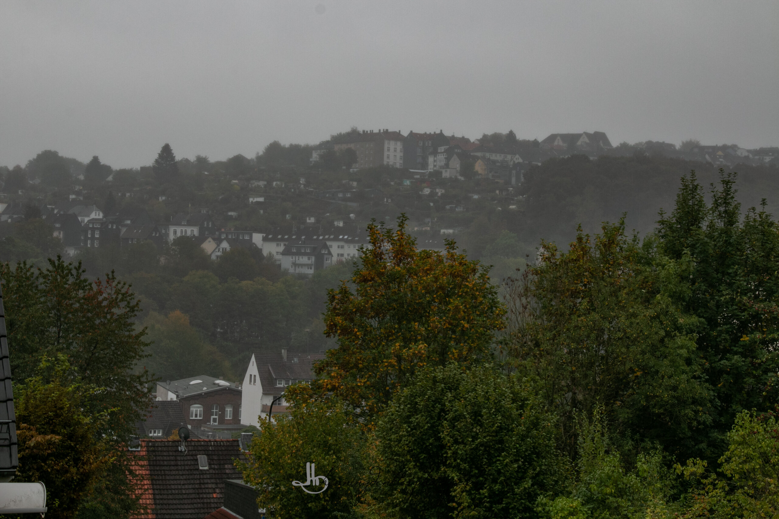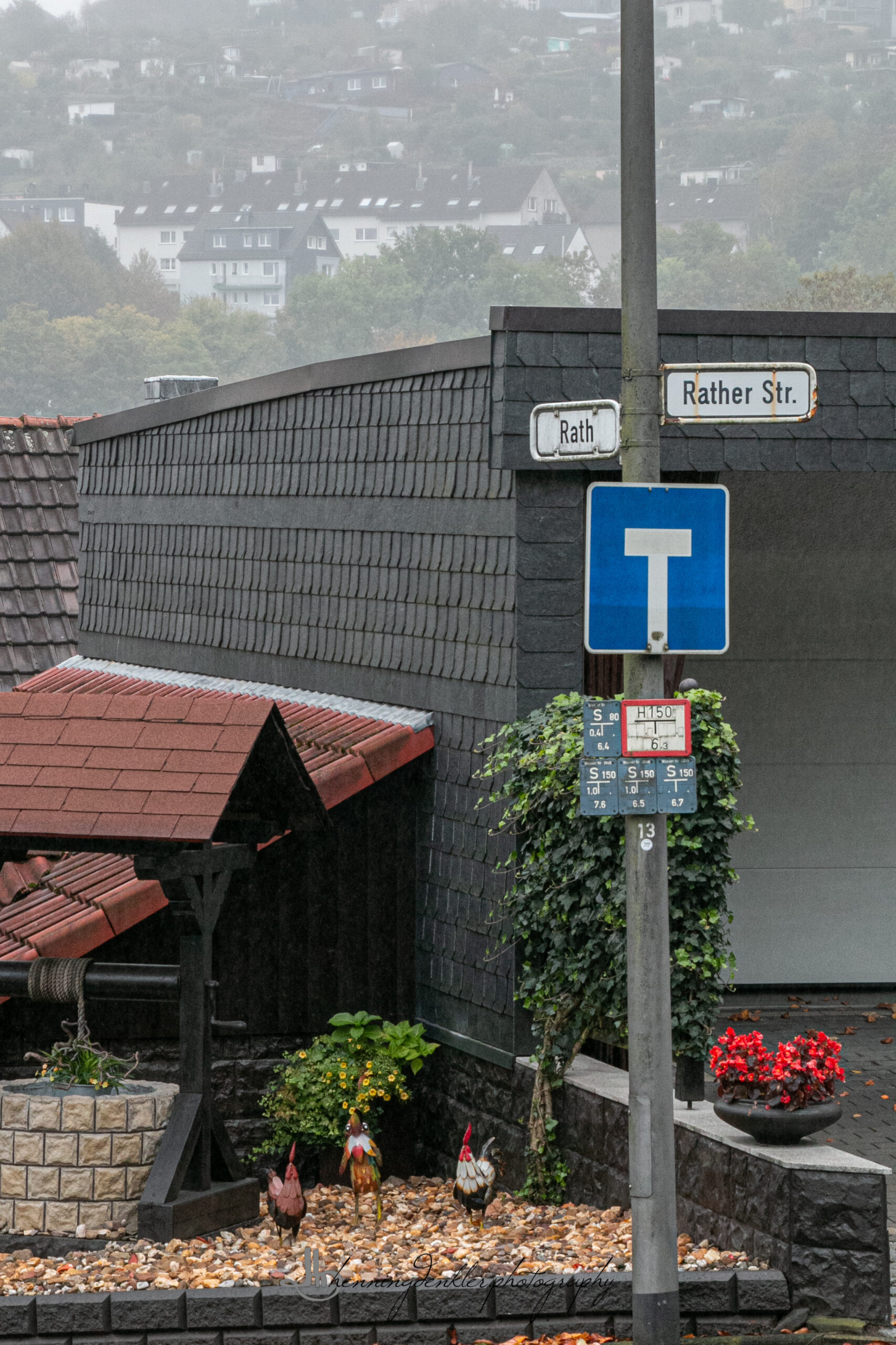 Der Weg führte mich auch an der Ibacher Mühle entlang, wahrscheinlich einer der steilsten Straßen des hügeligen Remscheids. Gleichwohl erlaubt gerade der Blick ins Tal ein tolle Sicht auf den Büchel und den Hastener Friedhof – also genau dorthin, wo ich herkam.
