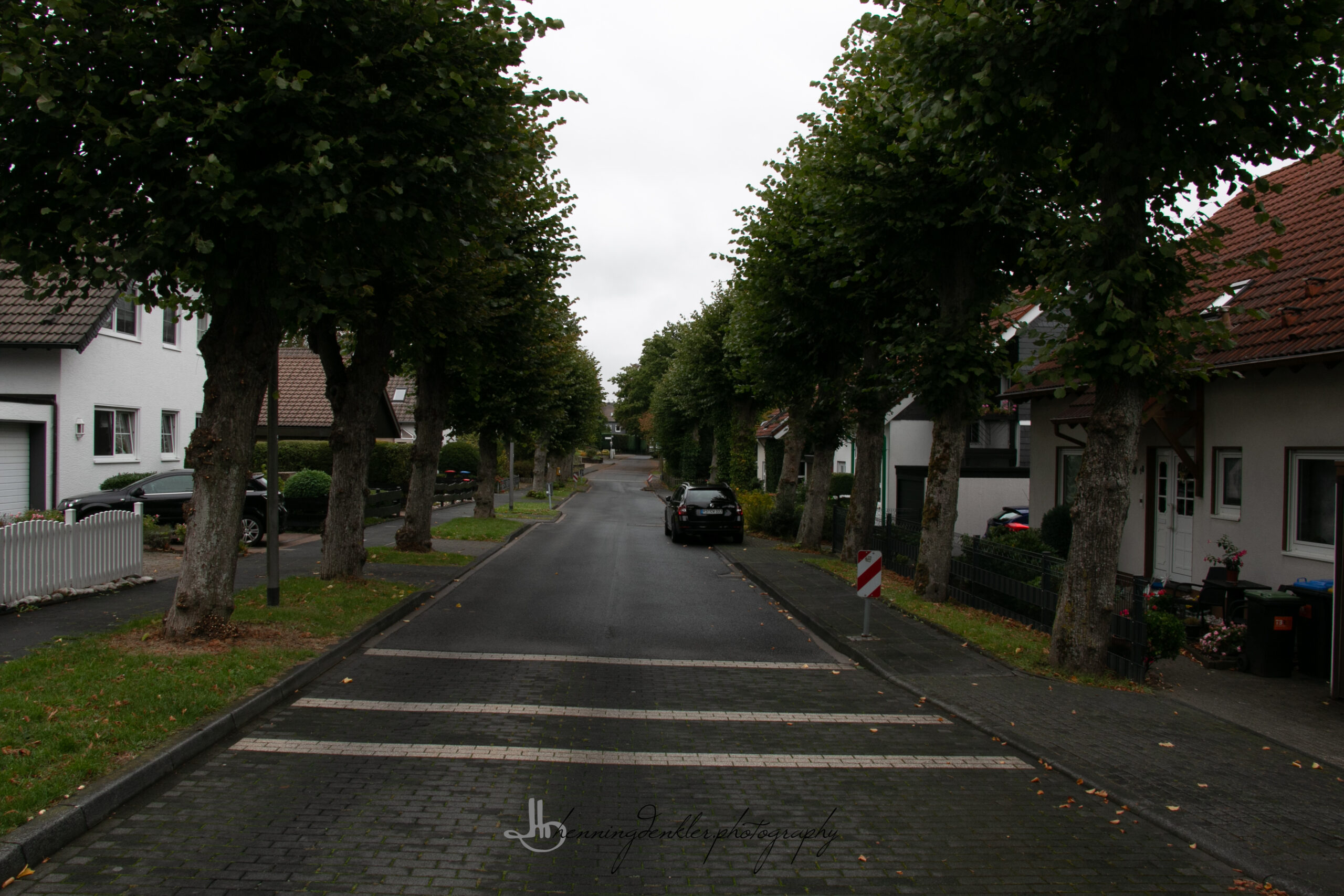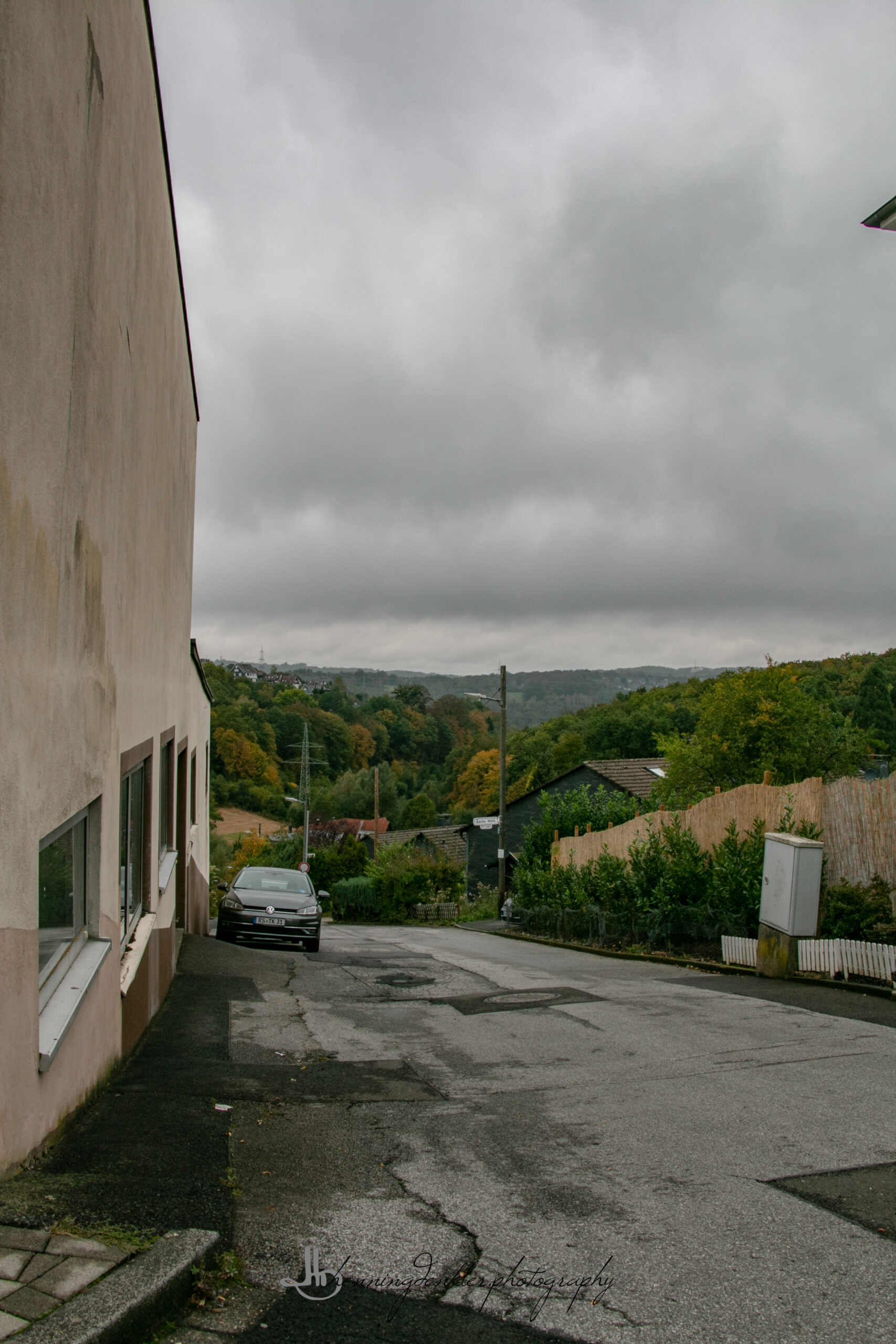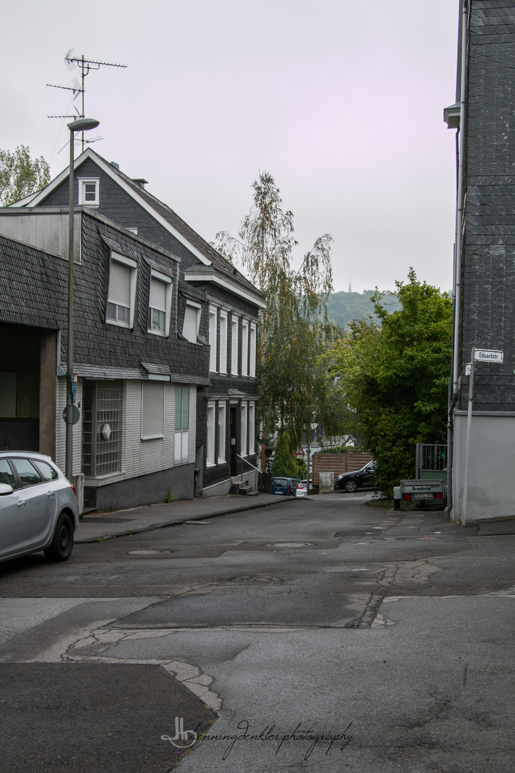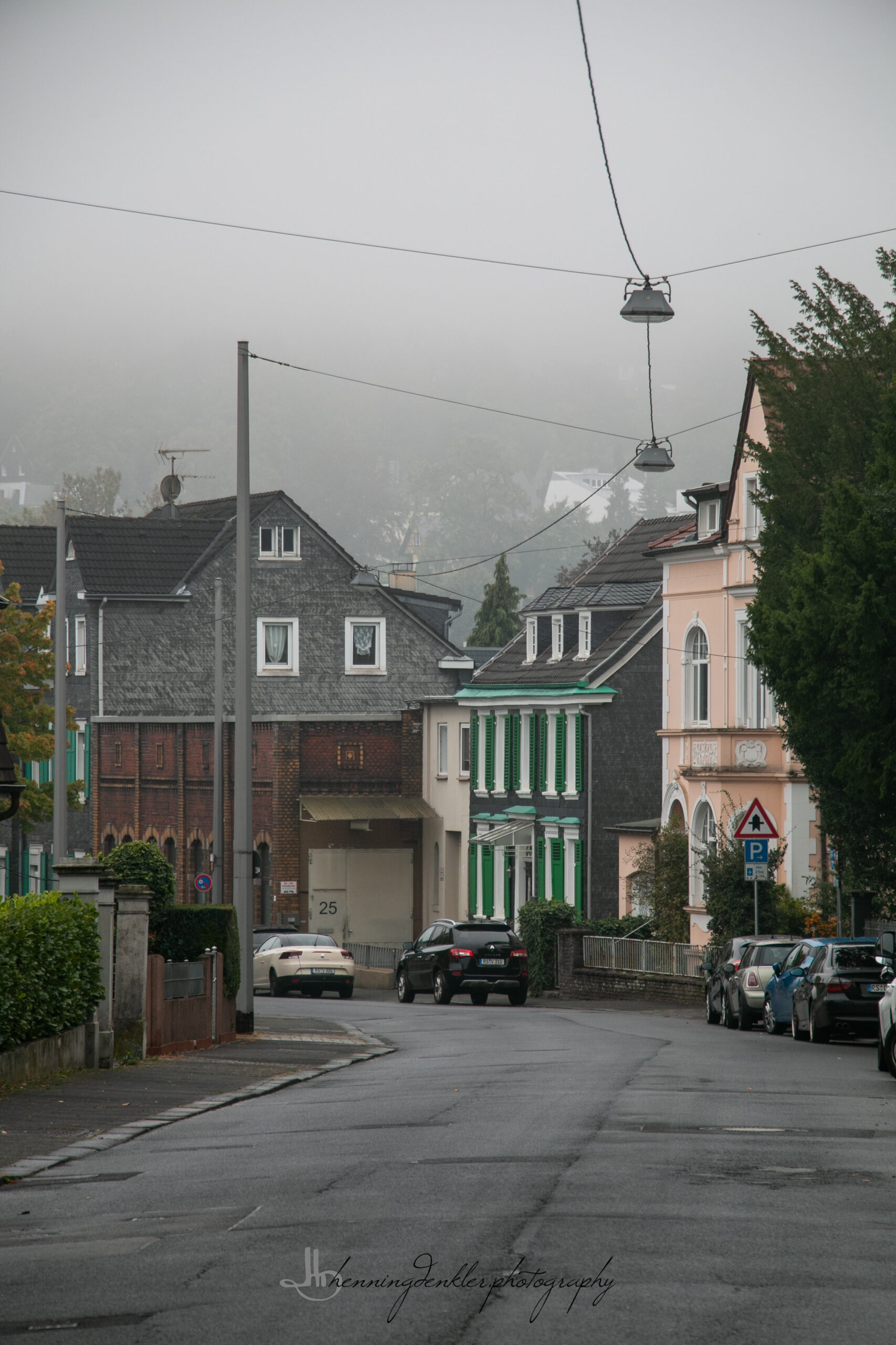 Der Weg führte mich auch an der Ibacher Mühle entlang, wahrscheinlich einer der steilsten Straßen des hügeligen Remscheids. Gleichwohl erlaubt gerade der Blick ins Tal ein tolle Sicht auf den Büchel und den Hastener Friedhof – also genau dorthin, wo ich herkam.
