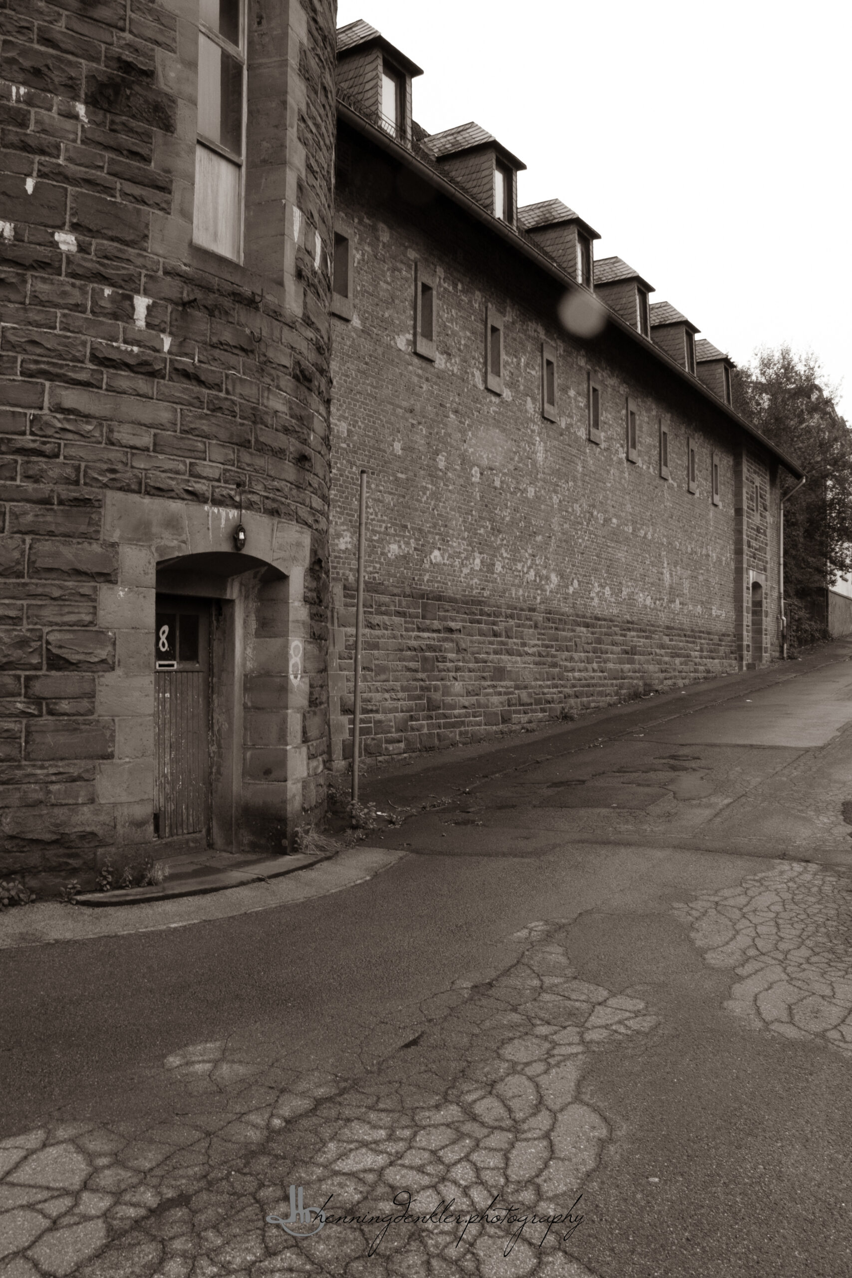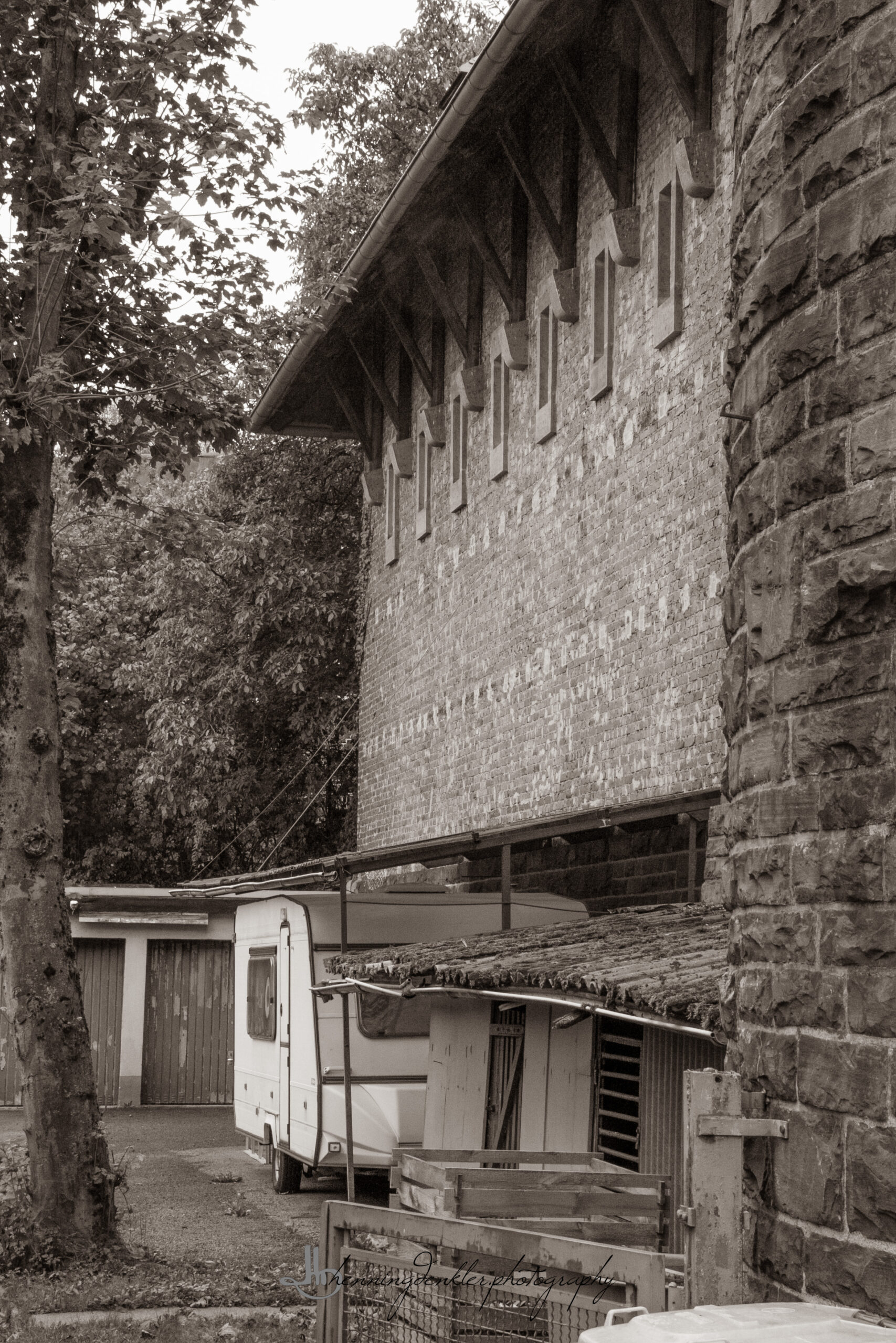 Gleich hinter dem Parkplatz im Hastener Zentrum liegt die mir bis dato unbekannte Rudloffstraße. Sie führt in eine Sackgasse, die echte Remscheider Geschichte verströmt: der Hochbunker Rudloffstraße ist einer von noch fünf Remscheider Bunkern und ein echtes Denkmal. Dazu gibt es im Internet einiges nachzulesen, zum Beispiel hier: https://www.geschichtsspuren.de/forum/viewtopic.php?t=15732&p=197877