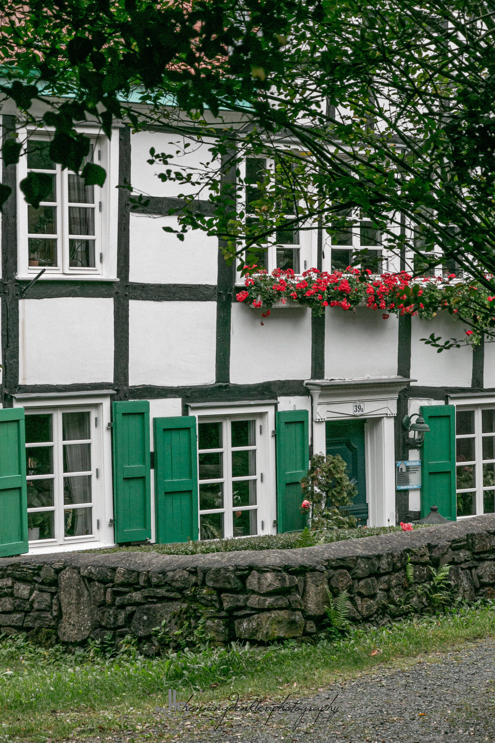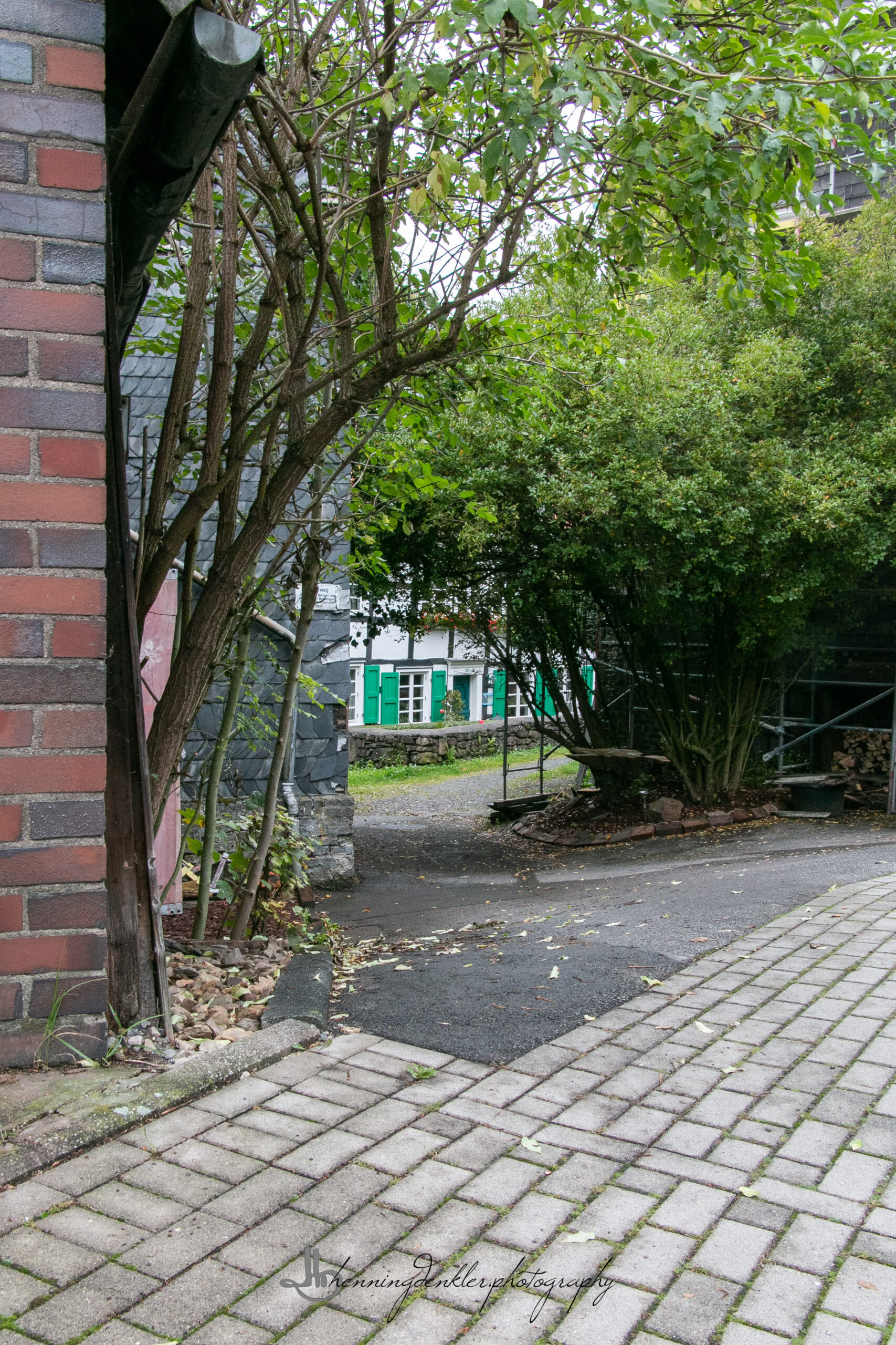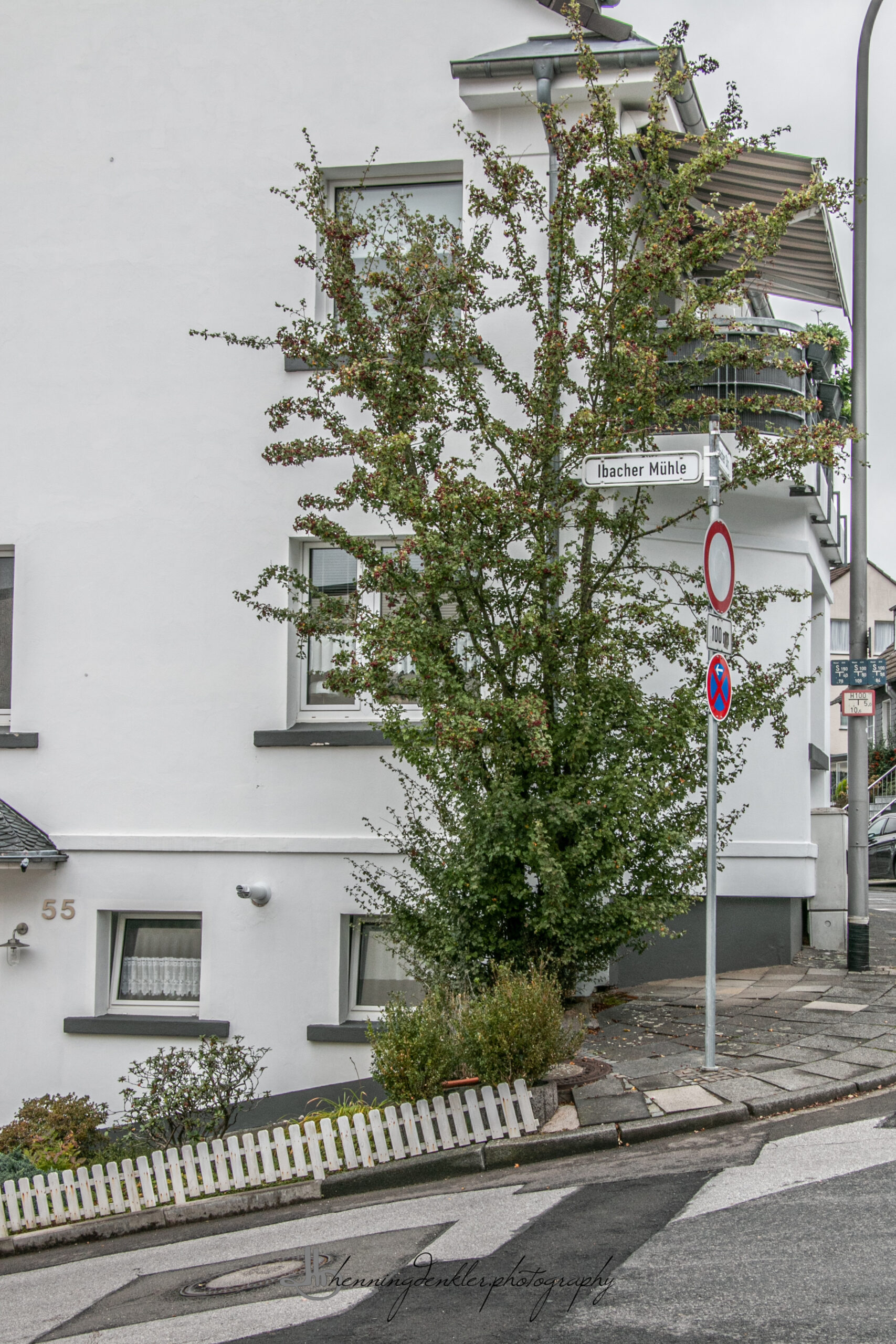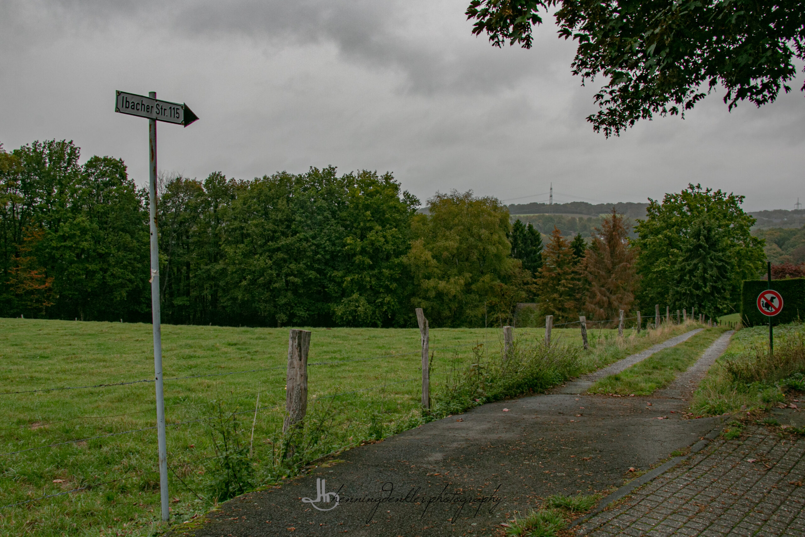 Gegenüber dem Aldi biegt dann die Ibacher Straße ab, die nur noch wenige Industriegebäude enthält und auch nur deutlich kleinere – aber mit mehr Charme. Die Straße ist allerdings auch so lang, dass sich viele verschiedene Blickwinkel dort bieten: vom altbergischen Hofgebäude über idyllische Wohngebäude bis hin zu grandiosen Aussichten.
